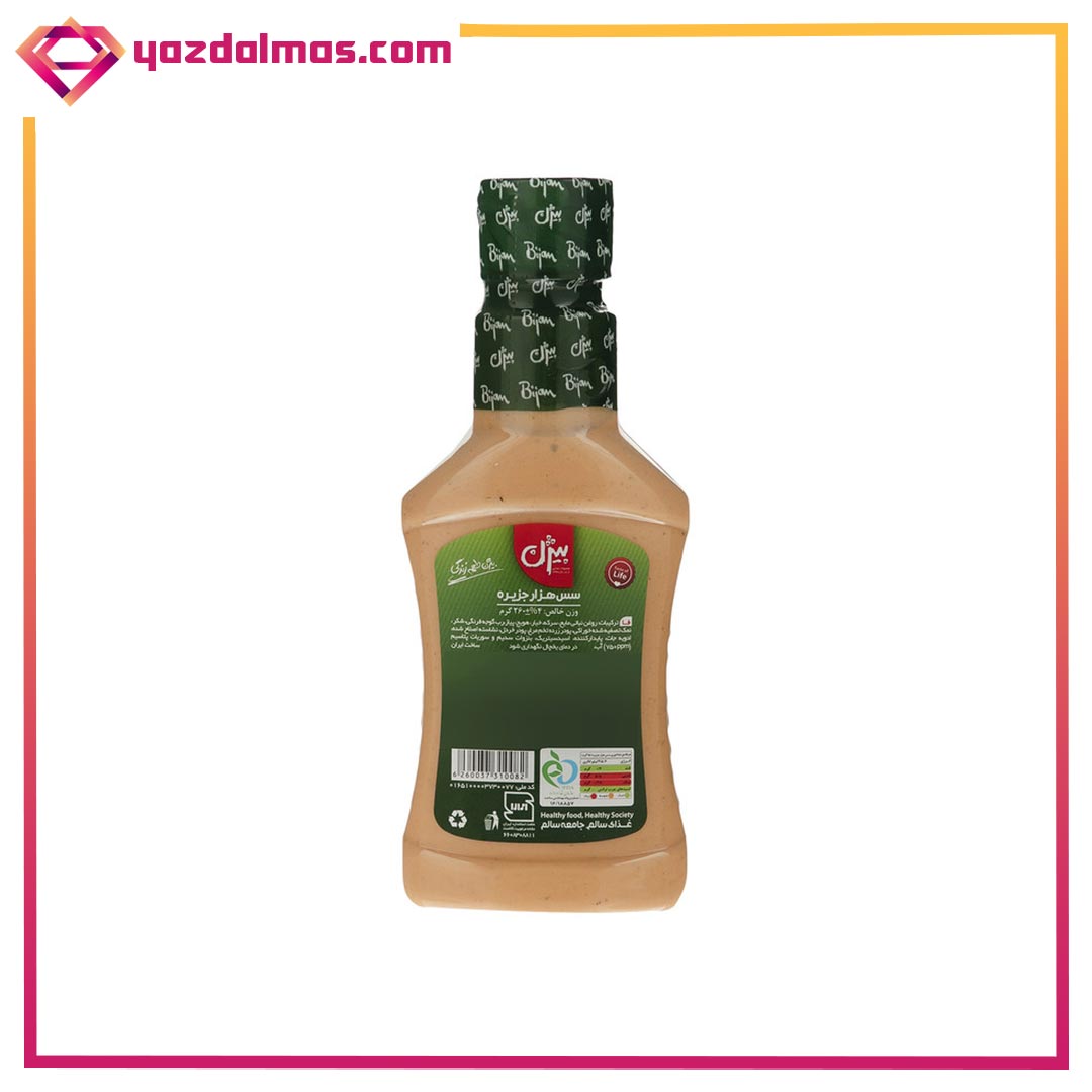 سس هزار جزیره بیژن برای انواع سالادها، ساندویچها، برگرها و غذاهای دریایی مناسب است و میتواند بهعنوان چاشنی در کنار سیبزمینی سرخکرده و سایر پیشغذاها استفاده شود.