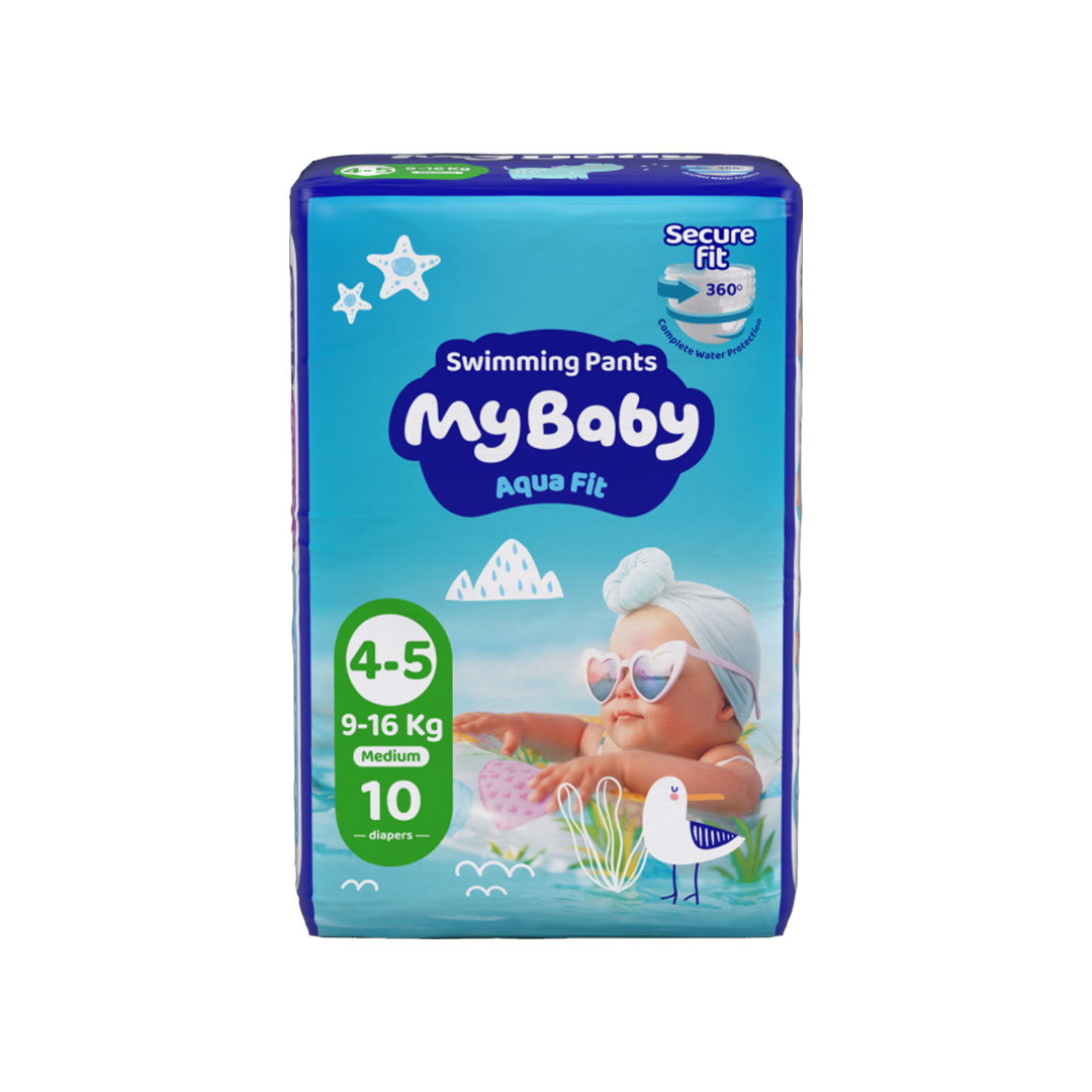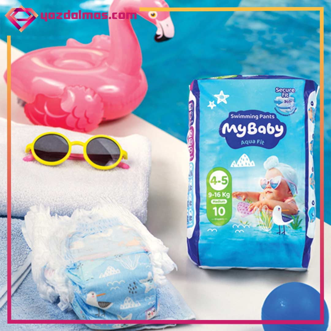 پوشک استخری مای بیبی ، یک محصوص جدید از شرکت مای بیبی می باشد.این پوشک دارای کش کمر یکپارچه ۳۶۰ درجه است که متناسب با فرم بدن کودک تنظیم شده و با لایه محافظ عمودی ضخیمتر و بلندتر مانع از نشتی مدفوع داخل آب میشود.