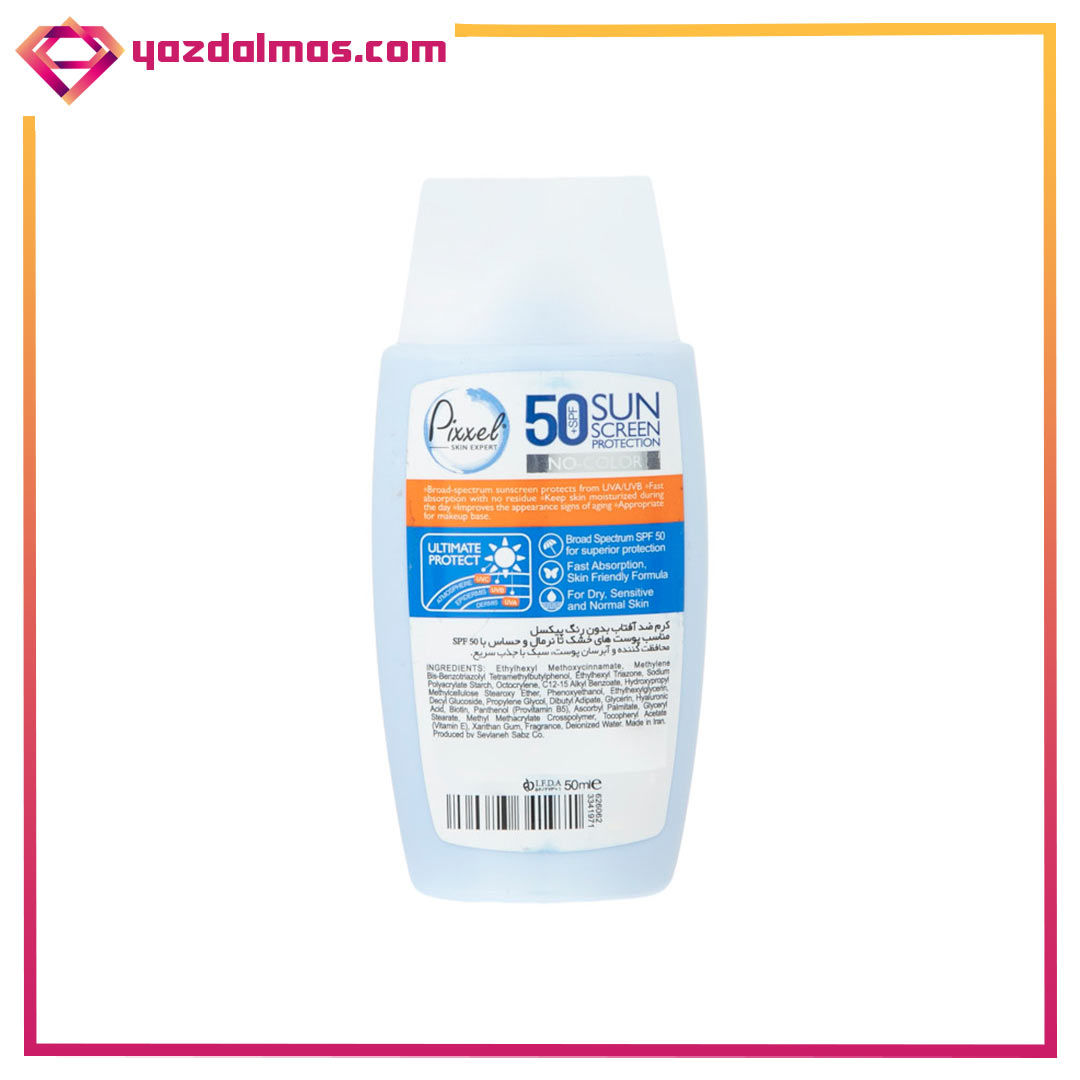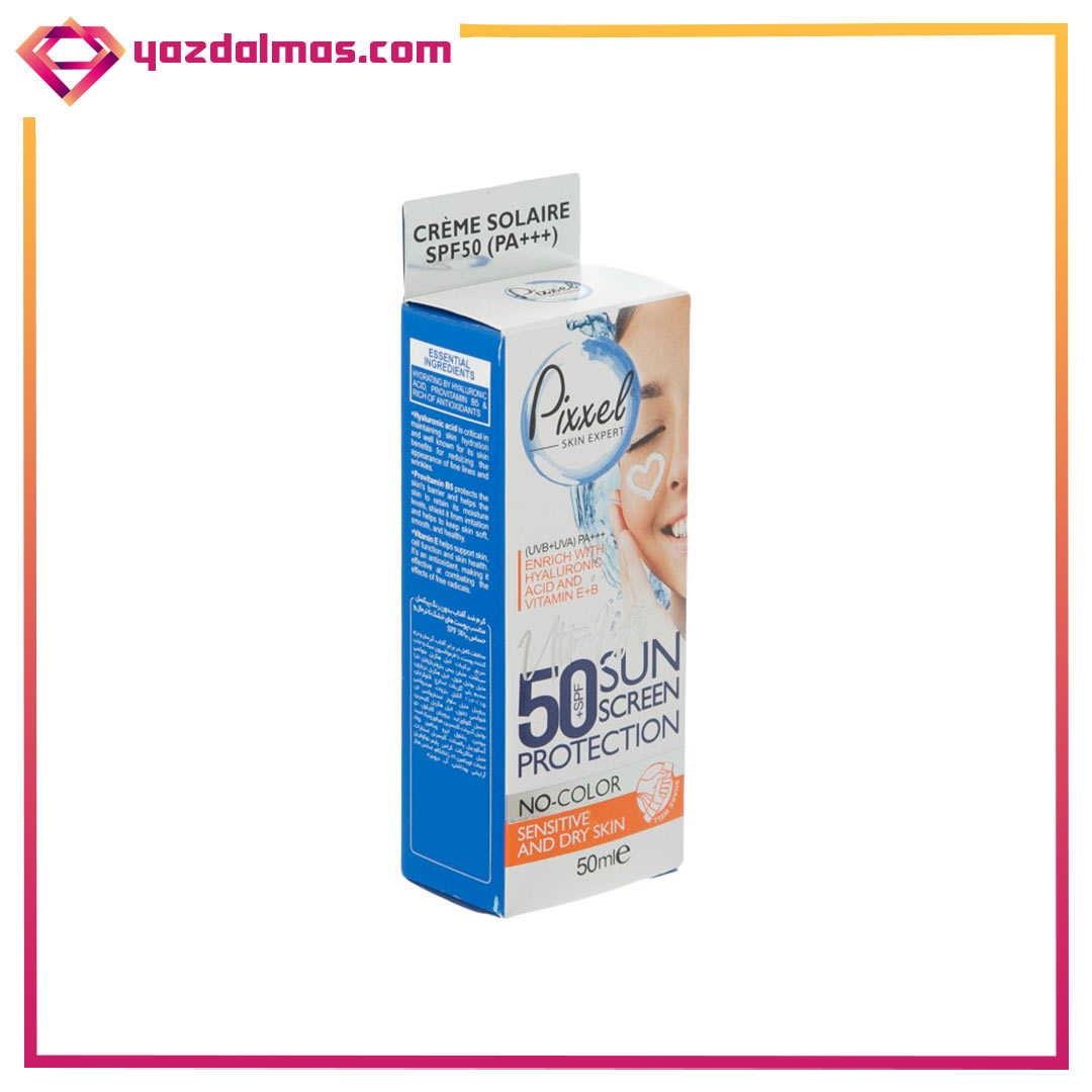 کرم ضد آفتاب بدون رنگ مناسب پوست های خشک تا نرمال و حساس 50 میلی لیتر پیکسل